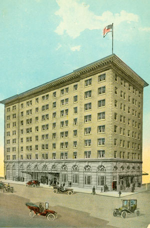 About 1913 William began working as an auditor for the Jefferson Hotel, supposedly the best in Peoria. In a 1914 advertisement, the hotel called itself "Peoria's New Hotel," with 225 rooms each with private bath, a rate of $1.50 per day European plan, three cafes, two buffets, and a billiard room. Cigars, a barber shop, flowers, and stenographer services were available. One might suspect that William had some help obtaining his job, as Arthur Lehmann, brother of his wife's older sister Minnie's husband, was secretary and treasurer of the company that owned the hotel.