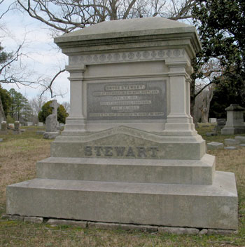 44 The monument for his grave specified in his will was installed in Dec 1894. A newspaper account described the base being carried to the cemetery "on a powerful wagon constructed by Joe Jarrell for the purpose." It was pulled by ten large mules, and "the massive stone covered the entire size of the wagon, projecting over the wheels."
