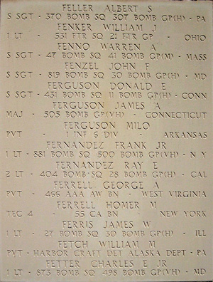 8,9 He was awarded the Purple Heart Medal and the Air Medal. He is listed on the tablets at the National Memorial Cemetery of the Pacific, Honolulu, Hawaii